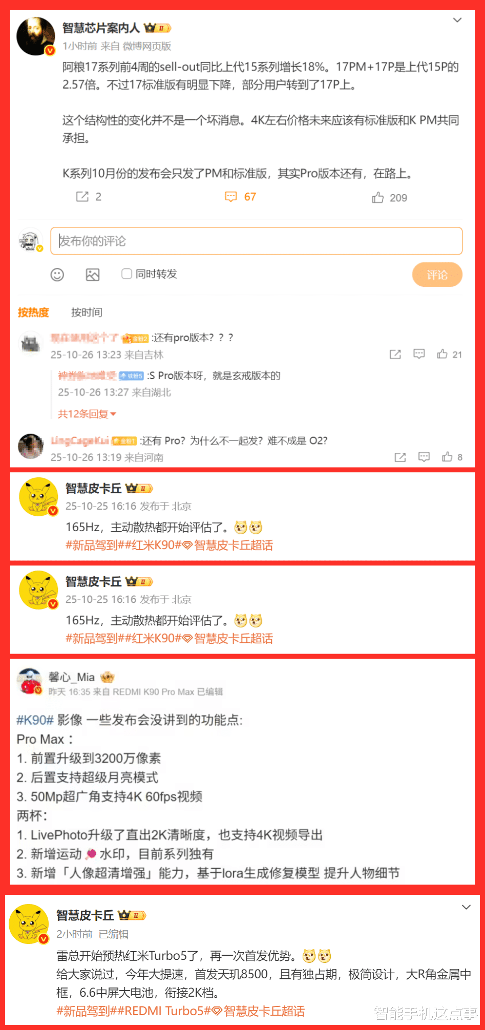 近期有博主透露称红米K90 Pro版本会在后续和大家进行见面。